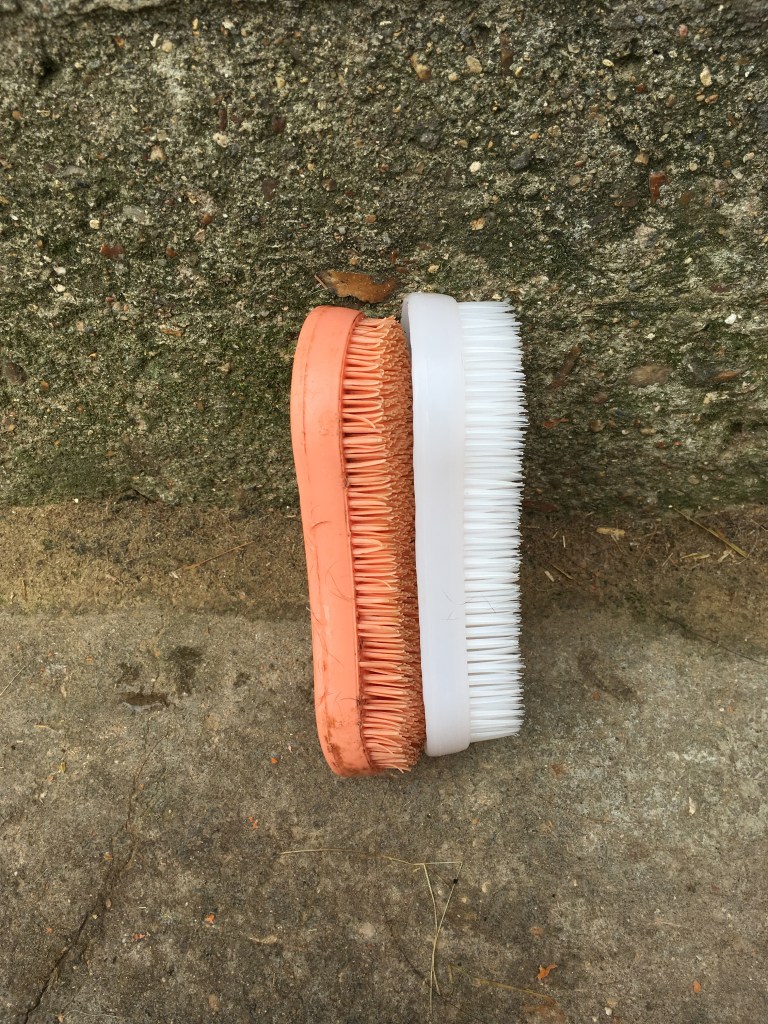 Il faut un début à tout, et le premier article de cette rubrique porte sur un produit déjà bien connu. Tous les avis louent le côté pratique et utile (ouf !), et je ne le renie pas, bien au contraire. Ce blog étant aux prémices, vous ne le savez pas encore mais Voïda est une jument très sensible au niveau du toucher, ce que l’on appelle l’hyperesthésie. Quand je l’ai eu, impossible de lui passer une étrille sur le corps ou une brosse à poils durs. J’ai découvert cette petite brosse rapidement grâce à une de mes amies aux écuries qui en avait déjà une depuis quelques mois.