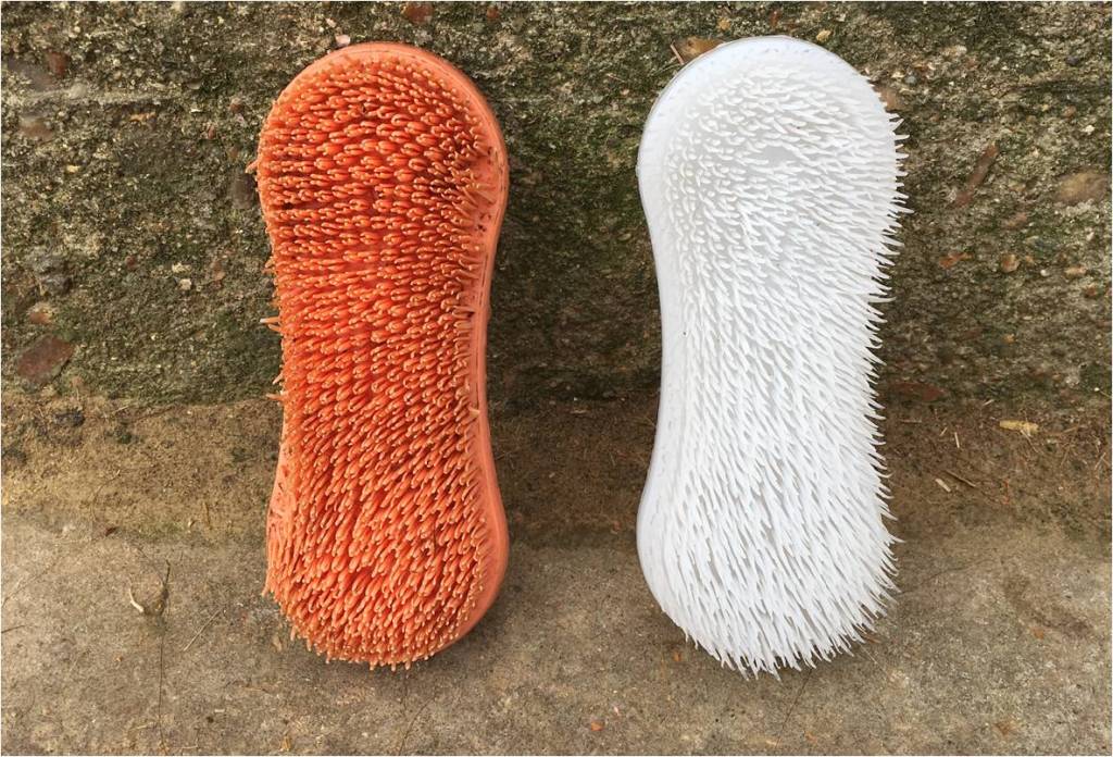 Ces petites brosses ont un succès fou et bon nombre de blogs en parlent déjà. C’est normal, elles le méritent amplement ! Avec une jument hyperesthésique, elles sont indispensables.