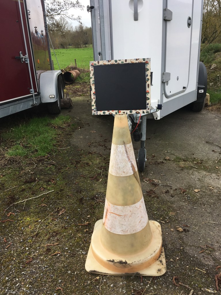 J’ai choisi d’en avoir deux : un posé devant le van tout le temps et un que je mets dans mon plot de chantier lorsque le van est en sortie. Celui mis H24 se glisse dans le coffre quand je prends le van, tandis que l’autre est stocké dans le van lorsqu’il n’est pas utilisé. Bon… pour l’instant je ne peux pas vous dire si ça marche car je n’ai pas posé le panneau H24 et je n’ai pas encore sorti mon van depuis !