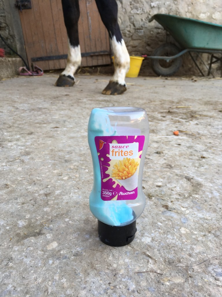 Au cours d’un barbecue l’été dernier, j’ai littéralement eu une illumination devant ces tubes de sauces ! « C’est ça qu’il me faut ! » m’écriais-je devant toute la famille, me scotchant du regard. [Et me scotchant encore plus quand je dis que c’est pour mon cheval même s’ils ont l’habitude de mes idées bizarres] Merci les copines qui ont donc sauvé feu les tubes de sauce et de moutarde des poubelles familiales [parce que en fait, j’en mange pas de ces sauces !].