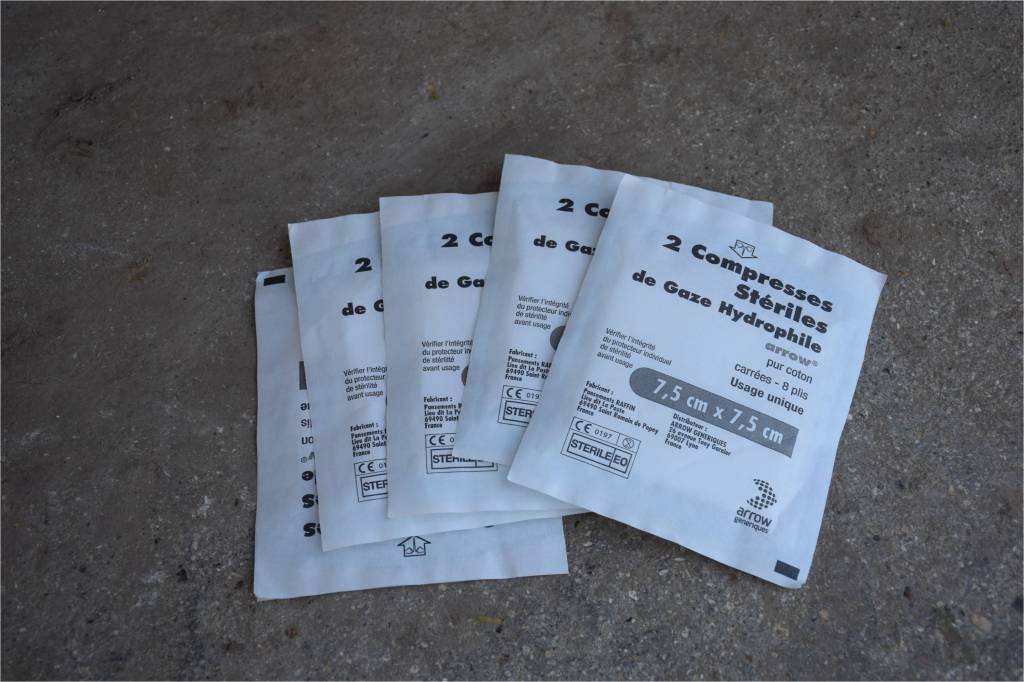 Elles permettent le nettoyage des plaies sans eau et la réalisation de pansements. Préférez les prendre assez grandes, vous pourrez les couper en deux, et mieux adapter à la taille de la plaie. C’est ainsi plus économique.