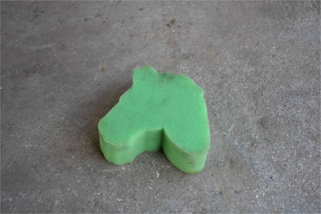Elle est indispensable pour nettoyer les plaies, à prendre plutôt en petit modèle car plus maniable pour faire mousser et frotter. Le cheval n’étant pas dans un milieu stérile, pas d’inquiétude à avoir une éponge « sale » (elle sera désinfectée avec le produit) mais attention il est impératif d’utiliser une seule éponge par tâche (ne pas mutualiser votre éponge de nettoyage de l’anus avec celle pour les plaies par exemple ou celle pour les yeux)