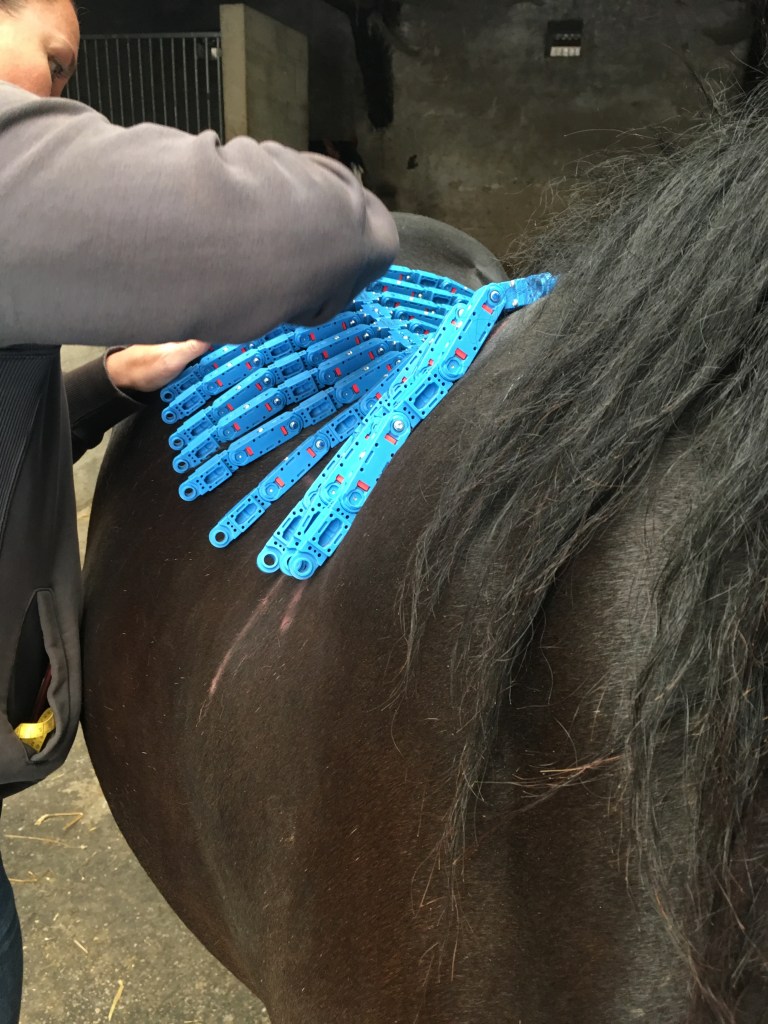 Connaissez-vous cette araignée bleue qui sert à prendre les mesures du dos ? Une de mes amies teste pour créer une selle sur-mesure pour sa jument merens. Et j’étais là pour découvrir ce nouvel outil !