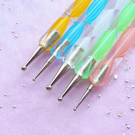 Ah oui, mais vous ne savez peut-être pas ce qu’est un dotting tool ? L’utilisation première de ce petit outil est de créer des petits points (« dot » en anglais) sur n’importe quel support, et notamment sur les ongles pour réaliser des manucures graphiques. Ces dotting tools ont donc des tailles et types de pointes différentes afin de pouvoir réaliser des dessins précis. Ils peuvent aussi servir pour les loisirs créatifs tels que la pâte Fimo.