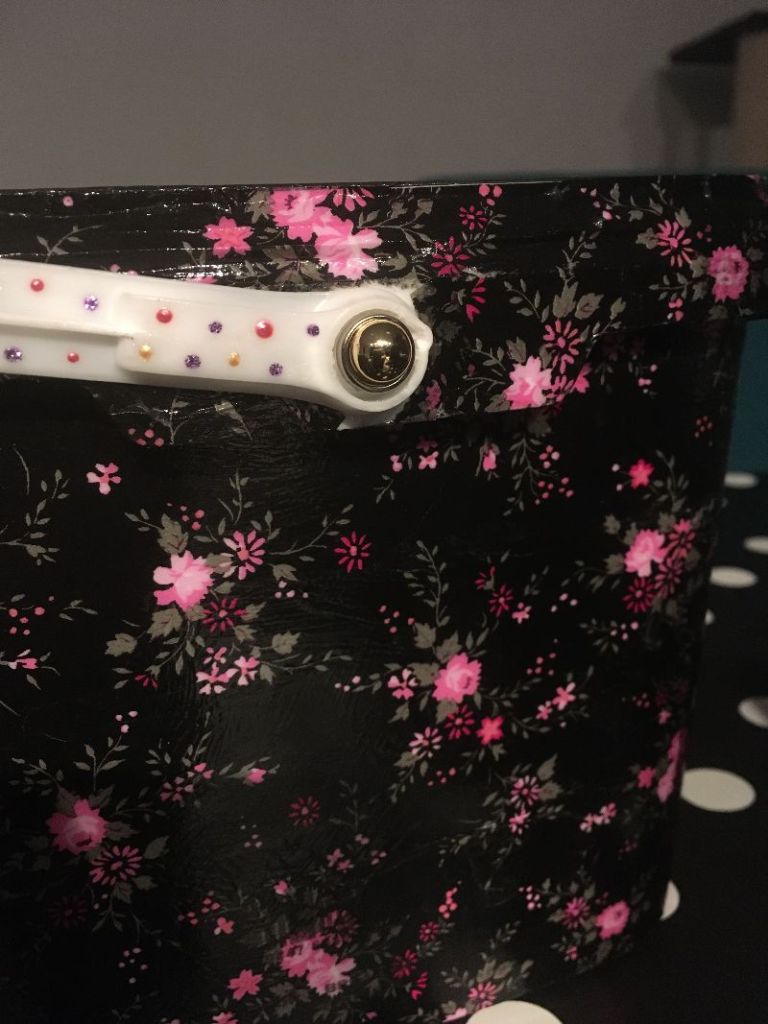 – des éléments de customisation [pour les côtés j’ai utilisé des attaches parisiennes déco auxquelles j’ai coupé les pattes]