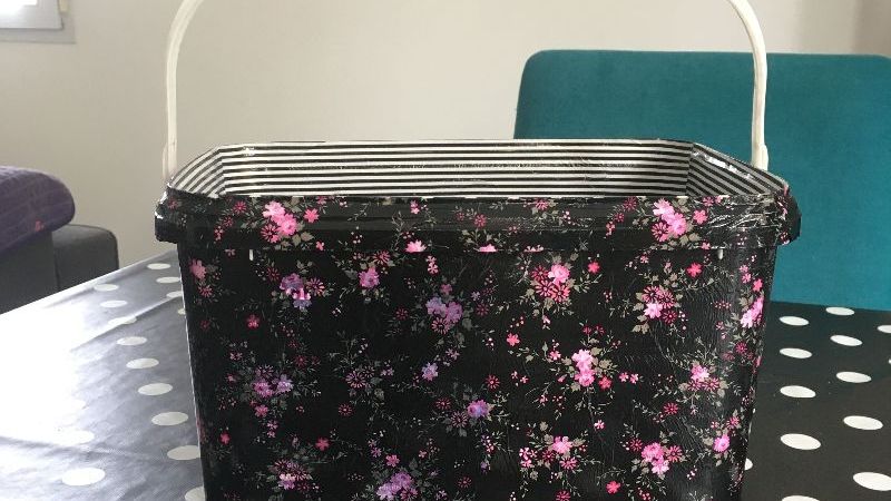 Evidemment, les boîtes ne sont pas très sexy comme ça… Et j’aime bien avoir des choses personnalisées, donc je les customise en version Décopatch. Du papier déco adapté, du vernis-colle et du vernis extérieur étanche et anti-uv pour finaliser, et vous avez une jolie boîte rien qu’à vous ! Elle est ainsi étanche et facile à nettoyer.