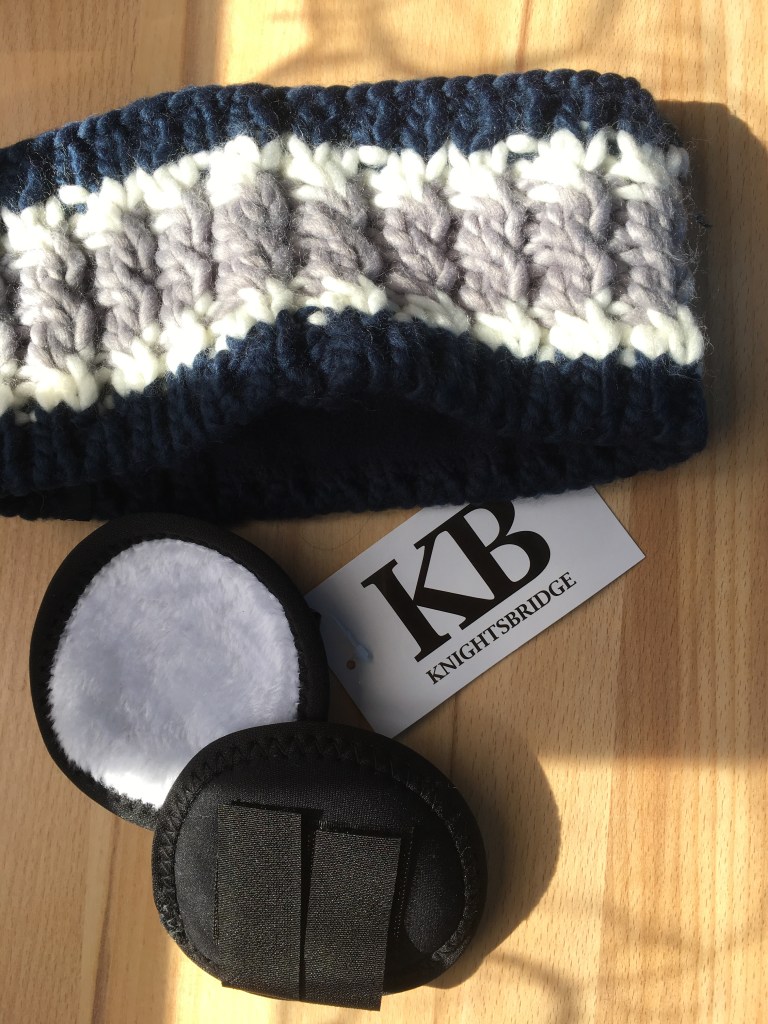Ils sont assez faciles à poser et tiennent bien en place, et dont aussi plus esthétique que le bandeau sur la bombe. Je n’ai pas pu beaucoup les utiliser l’an dernier car il n’a finalement pas fait si froid que ça et j’avais vite trop chaud avec ! [ou alors il tiennent vraiment très chaud…] Je les ai surtout utilisés en carrière, mais peu en balade donc je ne peux pas trop juger encore de l’atténuation des bruits, mais en carrière cela ne m’a pas trop choquée.