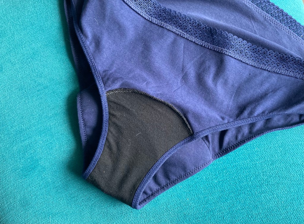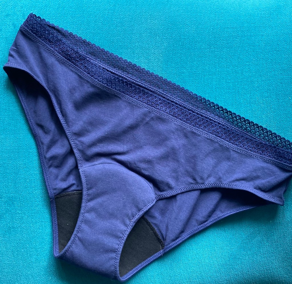 J’ai été vraiment très surprise du confort – pas d’effet « couche » comme j’avais peur – et surtout de la sensation « bien au sec ». Vraiment, au bout de 2 minutes on oublie qu’on n’a pas de protection et on est en confiance. Le premier passage aux toilettes, le fond étant noir on ne voit quasi rien et à vrai dire c’en est déstabilisant, puisqu’on va pas se mentir, on a l’habitude de voir – et d’évaluer – clairement ce que l’on perd avec les serviettes hygiéniques ou les tampons ! Là on ne sait pas trop évaluer la chose… à part quand on rince sa culotte ! [Pas de panique, moi aussi je trouvais ça un peu glauque cette phase rinçage… mais c’est pas insurmontable].