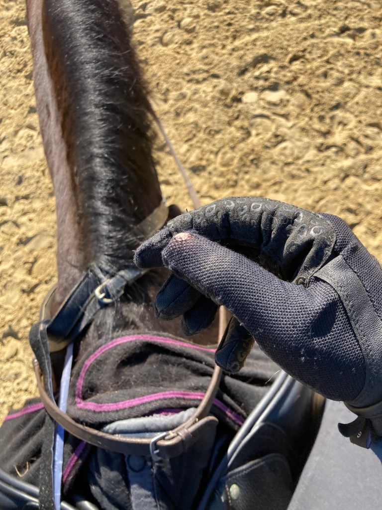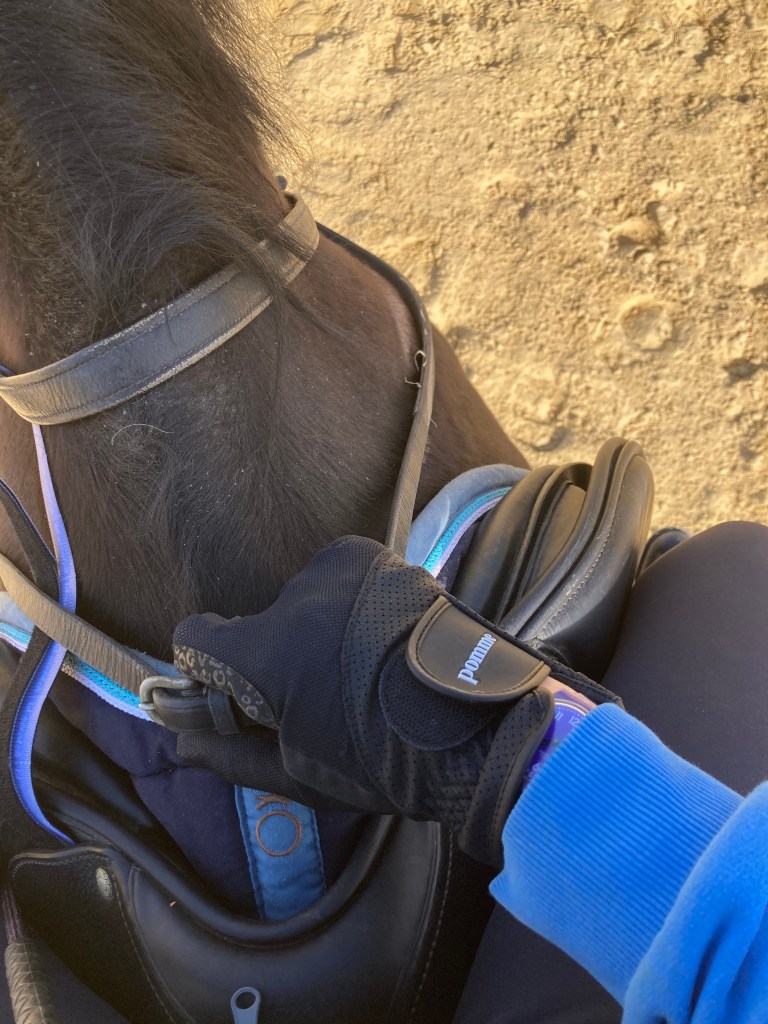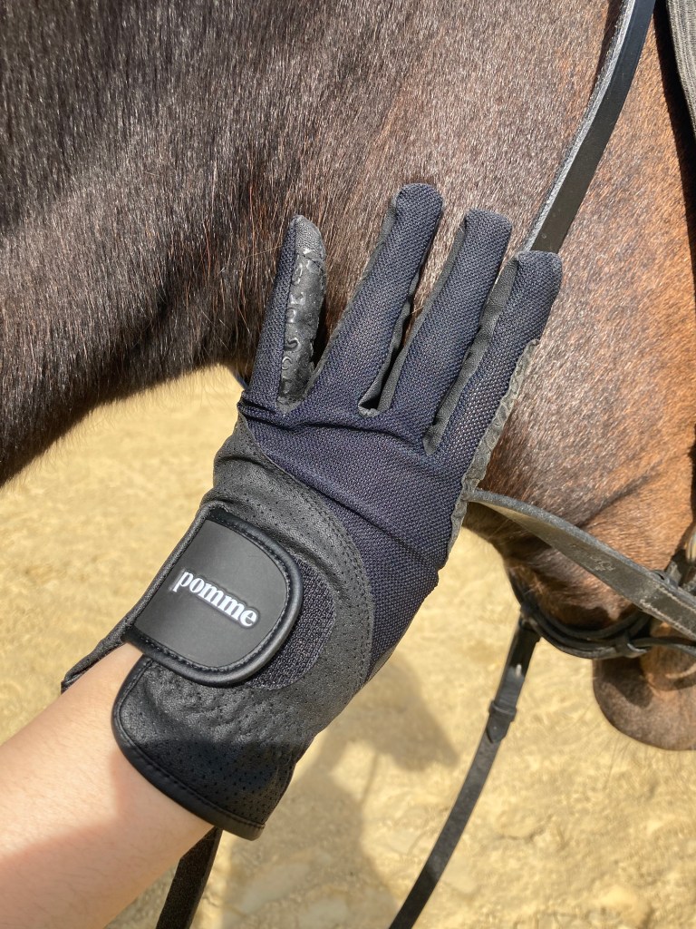 Les gants d’équitation sont pour moi un incontournable, pas question de monter sans sinon c’est ampoules assurées ! Je trouve aussi que je suis plus proche de mes rênes avec des gants, mais là c’est sûrement une question d’habitude car d’aussi loin que je me souvienne, j’en ai toujours portés.