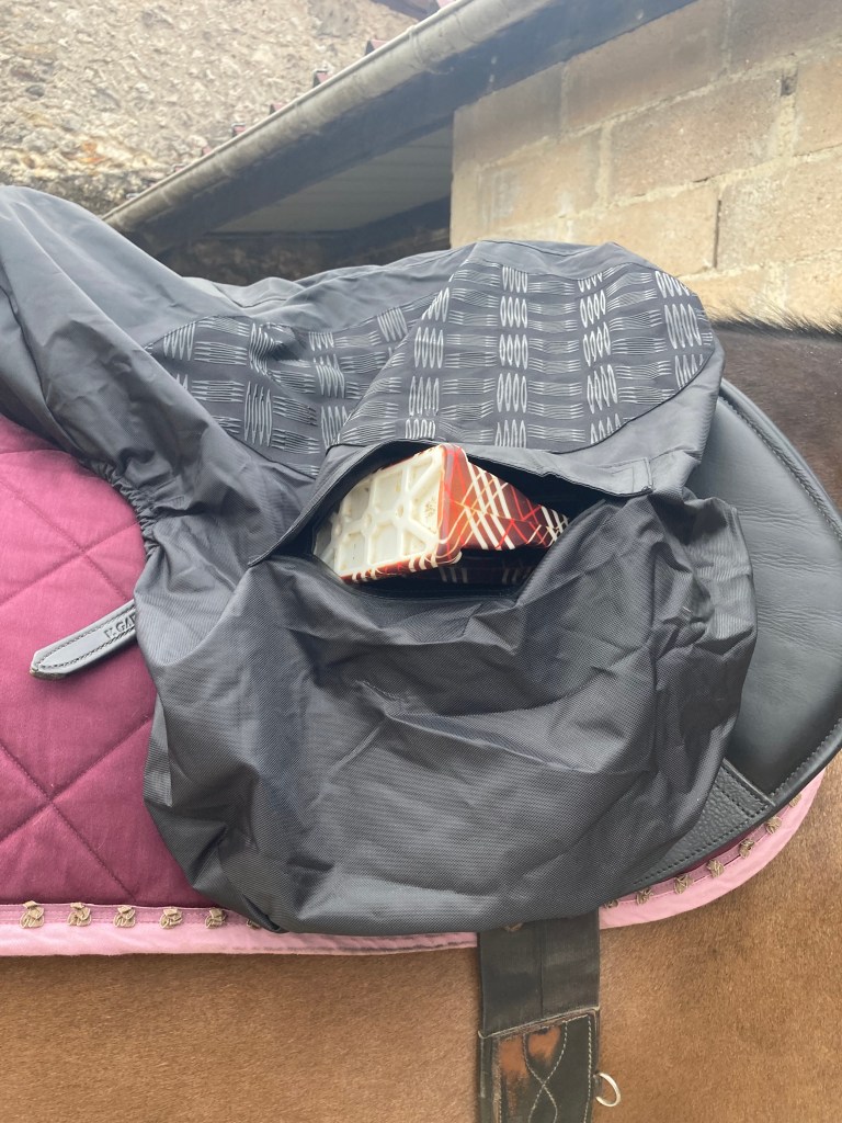 Alors même si ceux qui vont en concours et montent par tous les temps ne semblent pas voir de dégâts sur leur selles, l’eau qui s’infiltre régulièrement dans le cuir cause une usure bien plus rapide que la normale, et cela nécessite de la laisser sécher à la maison, de huiler et nourrir à chaque fois. Personnellement, j’ai mis un bon billet dans ma selle et au-delà de cela, je suis du genre hyper précautionneuse [ok, peut-être un peu psychorigide !] avec (certaines) de mes affaires. Donc je prends super soin de mon bijou noir de jais.