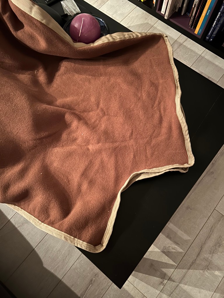 J’ai donc trouvé mon bonheur lors d’un Trocathlon au Décathlon du coin, avec une chemise de la même collection que la chemise de marcheur que j’avais (de mémoire, le modèle Toundra d’Equithème), même si la taille n’était pas la bonne, qu’importe puisque je vais la découper. Vous pouvez tout aussi bien donc prendre une couverture de marcheur ou une chemise polaire classique (dans ce cas, vous aurez par contre à traficoter les attaches de sangles ventrales), tout dépend de ce que vous souhaitez comme matière.