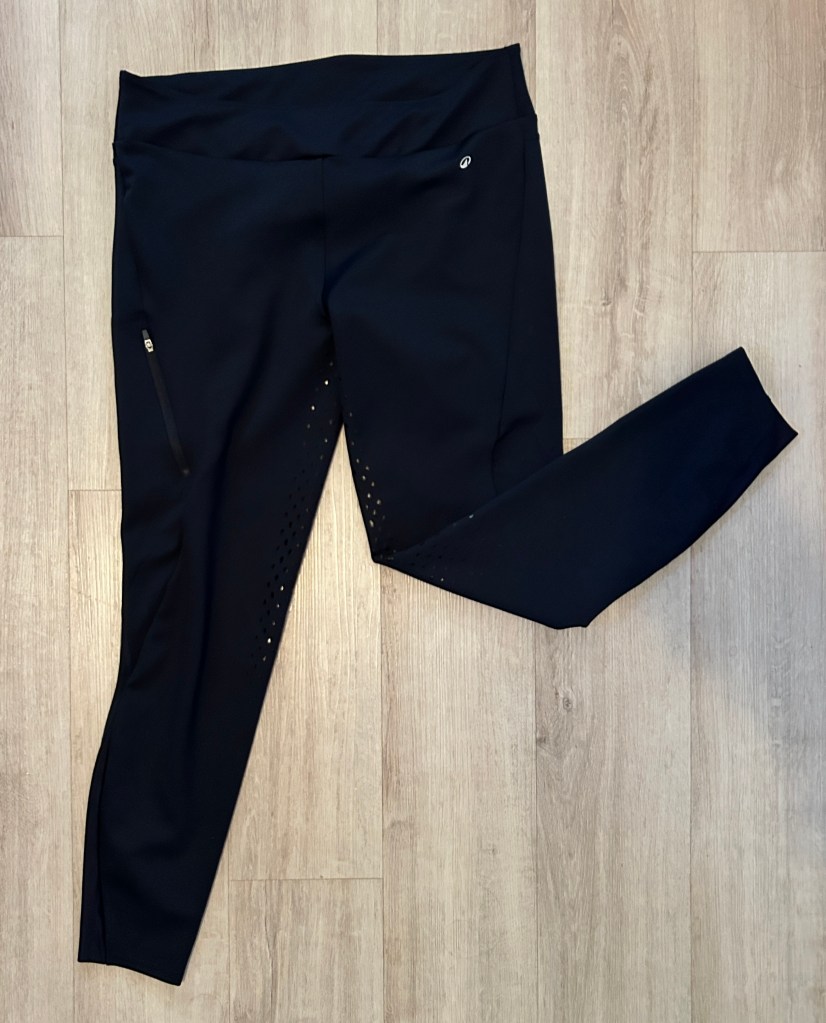 Pour le taillant, chez Décathlon j’ai rarement trouvé l’idéal, je trouve que ça taille toujours petit (ce qui a été prouvé par l’essai des autres pantalons dans la même taille). J’ai pris une taille 44 pour y rentrer mes poignées d’amour [intense], la longueur des jambes est bien, peut-être un peu grande. Le petit hic, c’est que je le perds quand même un peu et je le remonte toutes les 5 minutes. Et impossible de mettre une ceinture, principe même du legging.