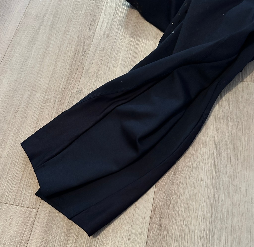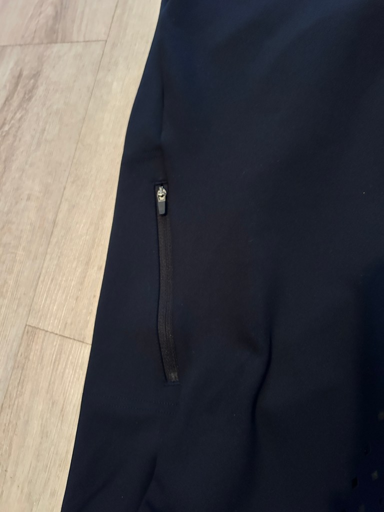 Je ne vais pas vous refaire la présentation dispo sur le site Décathlon, vous êtes assez grands pour aller la lire. En bref, ce legging est conçu pour la pratique régulière, il est semi-épais (il existe une version très légère et fine). Il dispose d’une poche zippée étanche sur la cuisse, d’un bas de jambe avec du lycra et d’un full grip fait de petits losanges en silicone entre les jambes et sur les fesses.